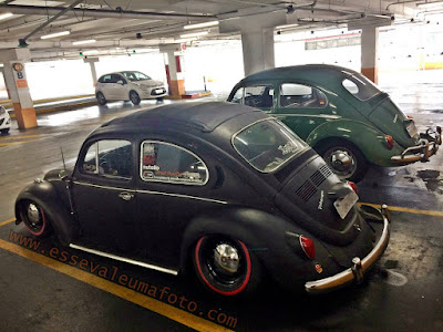 Certo dia eu precisei dar um pulo no Norte Shopping, peguei o Fusca e fui. Ao chegar no estacionamento, vi esse Fusca já conhecido e cujo dono eu também conhecido, e não tinha vaga melhor pra eu parar, né:
